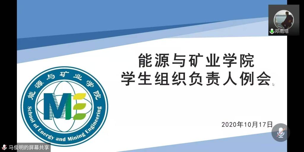 10月17日晚,永利官网学生组织负责人第二次例会通过腾讯会议线上召开,学生会指导老师邓雨培,团委学生副书记巨展奇、王盛辰,学生会主席团成员陈翔宇、杨海峰,新媒体主编杨贵毅出席本次会议。会议由主席团成员杨海峰主持。